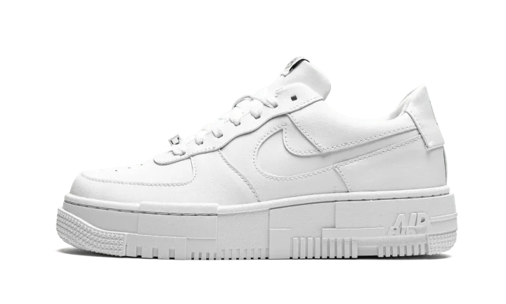 The Women's Nike Air Force 1 Pixel "Triple White" uses subtle pixel detailing to update the iconic model. This modified AF1 is highlighted by the mashup of pixelated detailing on the midsole, as well as oversized heel tabs and square-shaped lace eyelets. Taking things a step further, the branding on the tongue and heel tab sport geometric "NIKE" and "AF1" graphics. This Nike Air Force 1 "Pixel" comes in a all-white colorway and is offered in women's sizing.