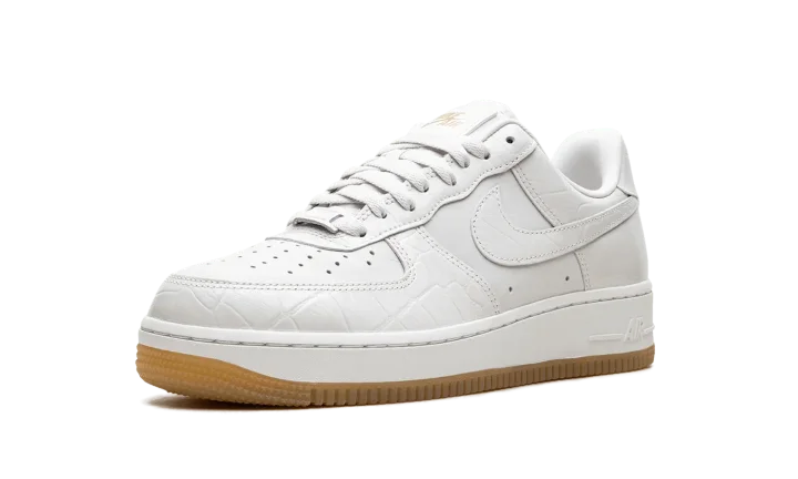 The Women's Nike Air Force 1 Low "Phantom Croc" is a women's-exclusive colorway of the classic basketball sneaker with patent croc leather on its design. Yet another premium look for the timeless Air Force 1 model, the "Phantom Croc" features a Phantom-colored leather base that's paired with tonal patent croc leather overlays and Swoosh branding. A Metallic Gold "Nike" logo appears on the tongue tag, while a tonal "Nike Air" logo is debossed on the heel. The Sail-colored rubber midsole and gum rubber outsole complete the look.