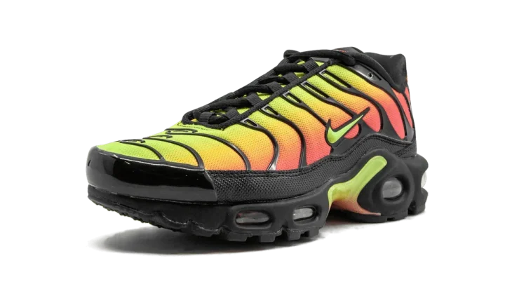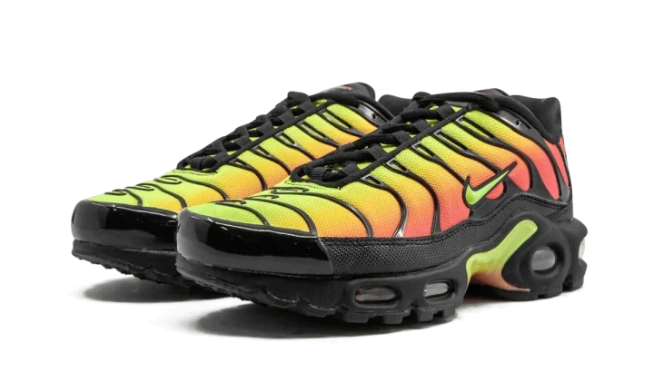 The Nike Air Max Plus TN, created especially for women, offers a stunning color combination. With a similar look from Air Max Plus colorways like the "Sunset" model, this version of the silhouette incorporates a hit of green. The sneaker gets an almost entirely mesh upper in a bright green, yellow, orange, and red gradient that travels the length of the shoe. Then, the vibrant colors are drastically contrasted with black TPU cage overlays. Like any great Nike Air Max Plus TN, the Swoosh equips the runner with a signature Ultra rubber sole unit.