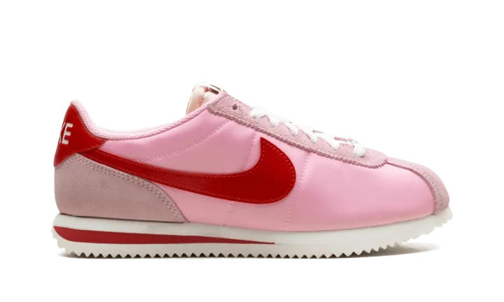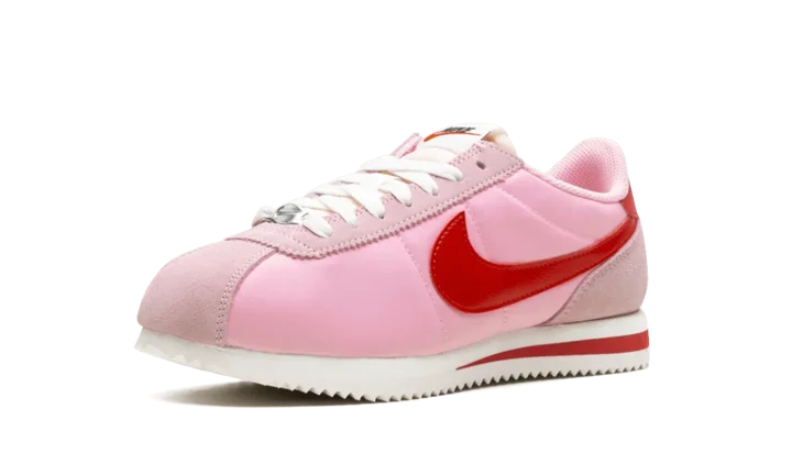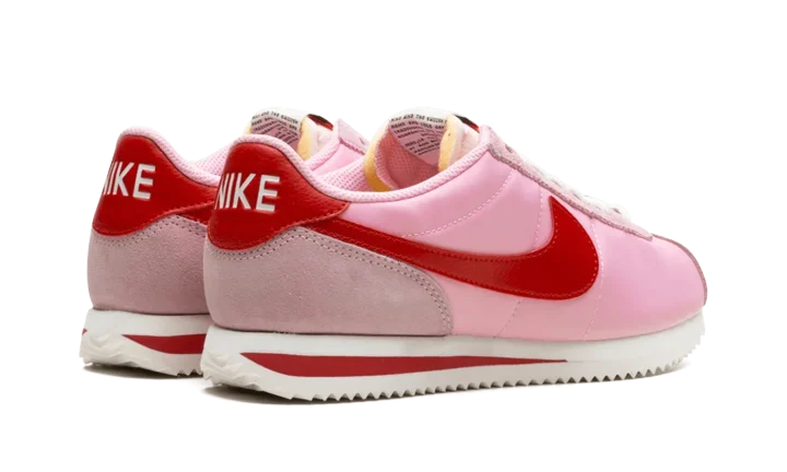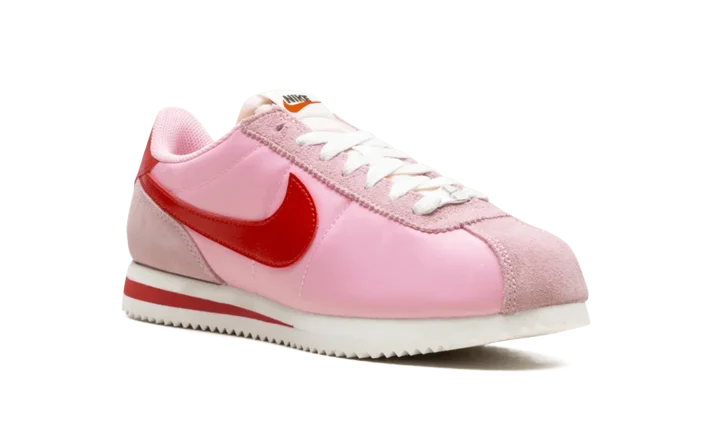 The style code HF9994-600 is for the Nike Women's Cortez TXT (Textile) Shoes in the charming and vibrant 'Medium Soft Pink/Fire Red/Sail' colorway. This is a modern update to the classic 1972 Cortez, engineered for improved fit and durability.