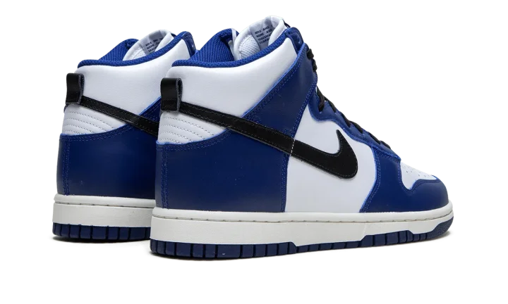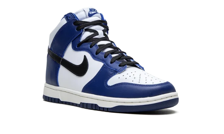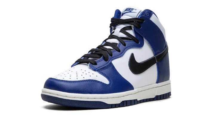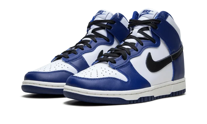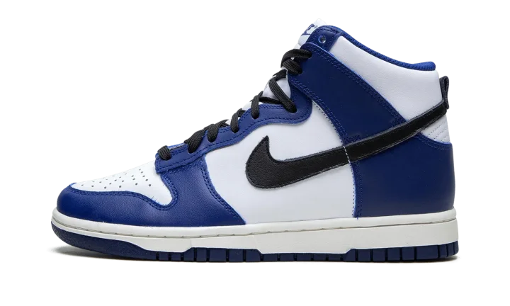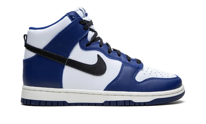 The Women's Nike Dunk High "Deep Royal Blue" is a women's-exclusive colorway of the retro basketball shoe with a classic-looking color block. The colorway features a white leather upper with Deep Royal Blue leather overlay panels. A black leather Swoosh can be seen on both sides of the sneaker. A royal "Nike" logo is paired with a navy Swoosh on the tongue tag. The Sail rubber midsole and Deep Royal Blue rubber outsole complete the look. Release date: August 23, 2022