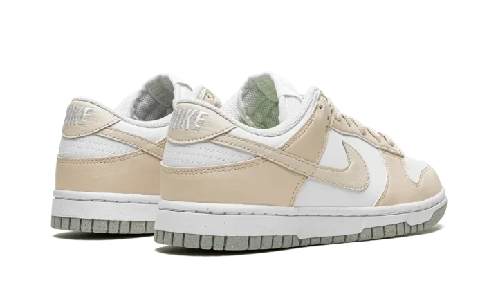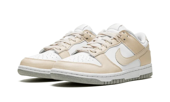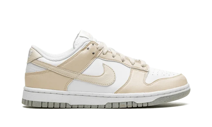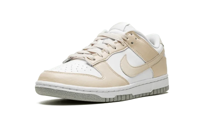 The Women's Nike Dunk Low Next Nature "Light Orewood Brown" is a versatile colorway of the vintage basketball shoe for women constructed from at least 20% recycled content by weight. Nike's "Move to Zero" initiative that aims to reduce its carbon footprint is progressed by the release of the "Light Orewood Brown" Dunk, which is designed in a classic two-tone style. Specifically, the shoe's white leather base is paired with light brown leather overlays. A Light Orewood Brown leather Swoosh resides on either side. A two-tone, white midsole and light brown rubber outsole finish off the appealing Dunk Low for women.
