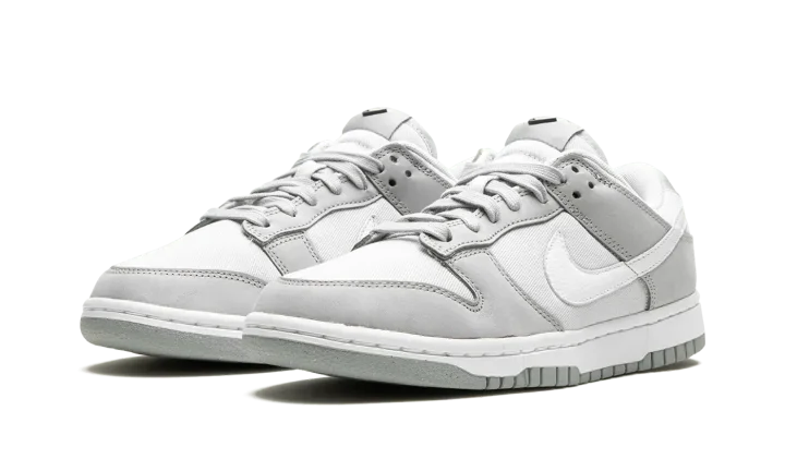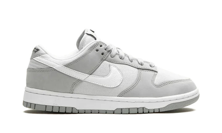 The Women's Nike Dunk Low LX "Light Smoke Grey" is a women's-exclusive colorway of the retro basketball shoe with a versatile design. The upper features Light Smoke Grey nubuck leather overlays on a grey canvas base. A white leather Swoosh appears on the sides while classic "Nike" branding is embroidered on the heel. More Swoosh and "Nike" detailing can be found on the tongue. Underfoot, a white midsole and grey outsole finish off this clean Dunk Low for women.