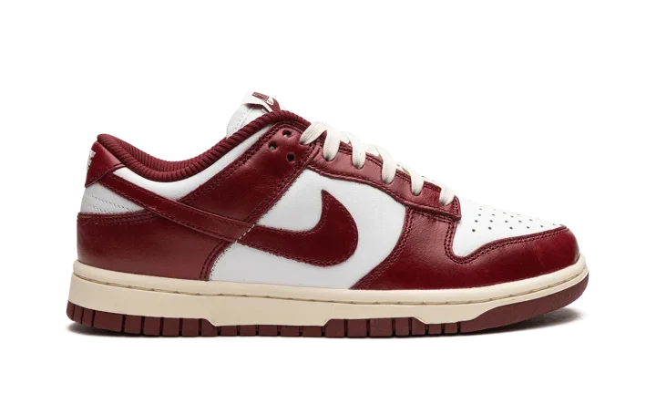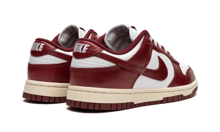The Women's Nike Dunk Low PRM "Team Red" is a women's-exclusive colorway of the classic basketball shoe with an aged vibe. The "Team Red" Dunk Low gives the popular and iconic silhouette a timeless appearance with a white leather upper contrasted with Team Red leather overlays and Swoosh branding on the sides. "Nike" branding is found on both the tongue tag and heel. A pre-aged midsole gives the shoe a decidedly vintage look. Release date: April 21, 2023