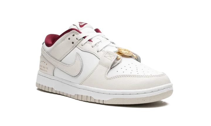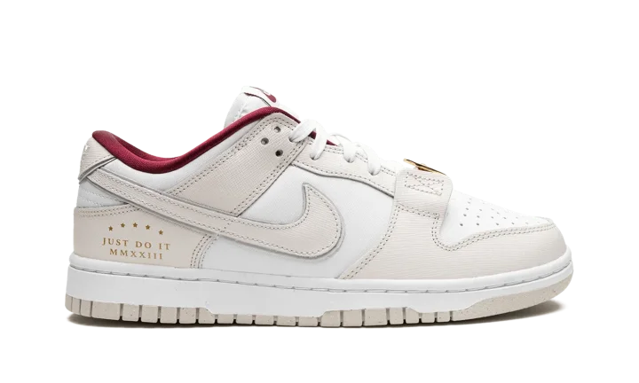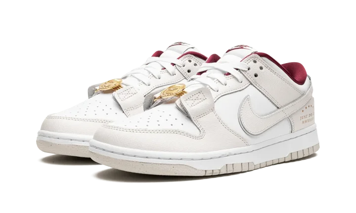 The Women's Nike Dunk Low "Just Do It" is a women's-exclusive colorway of the vintage basketball shoe that celebrates Nike's famous slogan. Unsurprisingly, nods to Nike's "Just Do It" catchphrase are found on the shoe of the same nickname, specifically stamped on the lateral side of the heel. "Just Do It" reappears on the footbed, as well. As for the rest of the shoe's design, the upper features a white canvas base with Photon Dust canvas overlays and Swoosh branding. Classic "Nike" detailing is found on the tongue tag. A gold lace medallion with engraved "Nike" branding completes the look. Release date: February 16, 2023
