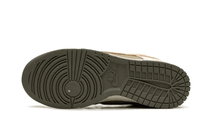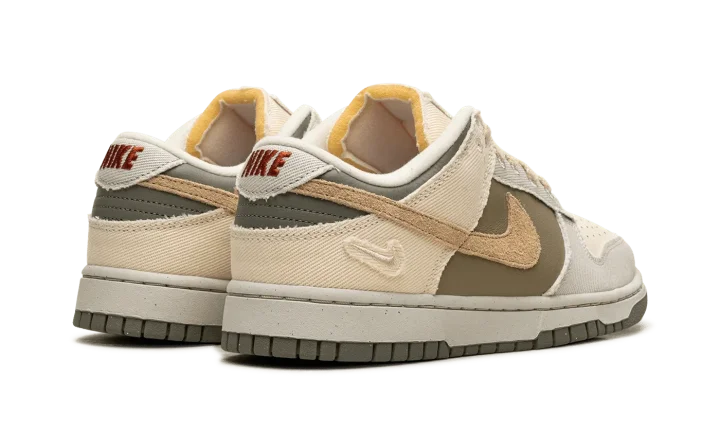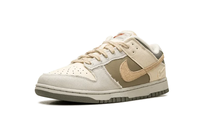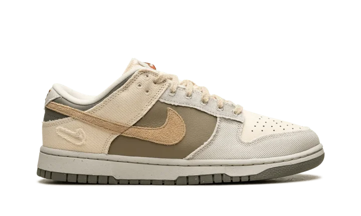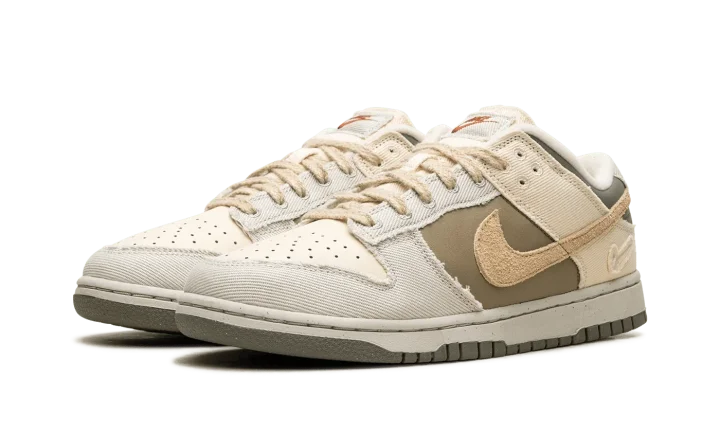 The Women's Nike Dunk Low "Light Bone/Dark Stucco" is a women's-exclusive colorway of the retro basketball shoe with a unique combination of materials. The Dunk Low "Light Bone/Dark Stucco" is made from materials such as leather, canvas, suede, and hemp. A Sesame-colored suede Swoosh appears on the sides, while Light Bone frayed canvas overlays can be seen on the toe, forefoot, eyelets, collar, and heel. Dark Stucco leather is located on the heel. A Swoosh logo is debossed on the lateral side of the heel, while classic "Nike" branding appears in red lettering on the canvas tongue tag. A Light Bone midsole and Dark Stucco outsole complete the look. Release date: March 5, 2024