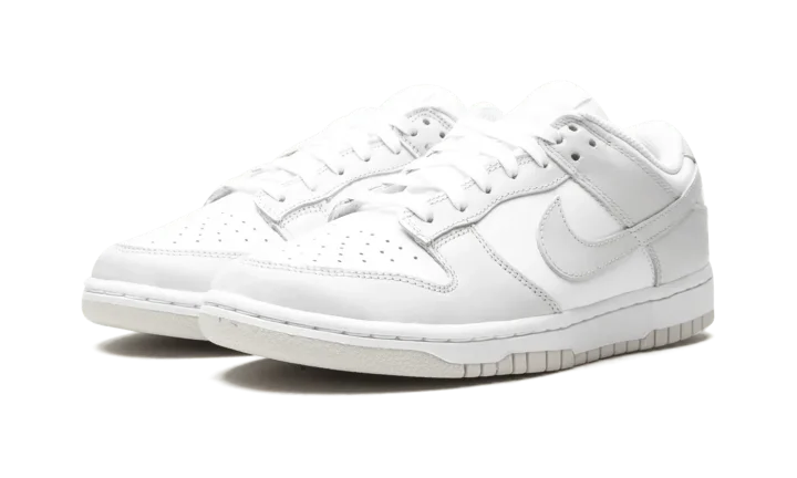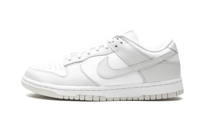 The Women's Nike Dunk Low "Photon Dust" is a highly versatile colorway of the venerable lifestyle shoe for women. An April 2021 release, the "Photon Dust" employs the same two-tone color block used on Dunks from the model's original lot of colorways, 1985's "Be True to Your School" series. A low contrast of white leather on the base and Photon Dust leather on the forefoot, eyelets, collar, heel, and Swoosh gives the shoe a minimalist, pared down look that can be worn in virtually any setting. Embroidered "Nike" branding can be found on the heel and Photon Dust "Nike Air" on the nylon tongue tag stitched onto the white nylon tongue. Underfoot, a combination of a white rubber midsole and light grey outsole completes the relaxed look of the Women's Nike Dunk Low in the "Photon Dust" colorway. Release date: May 19, 2021.