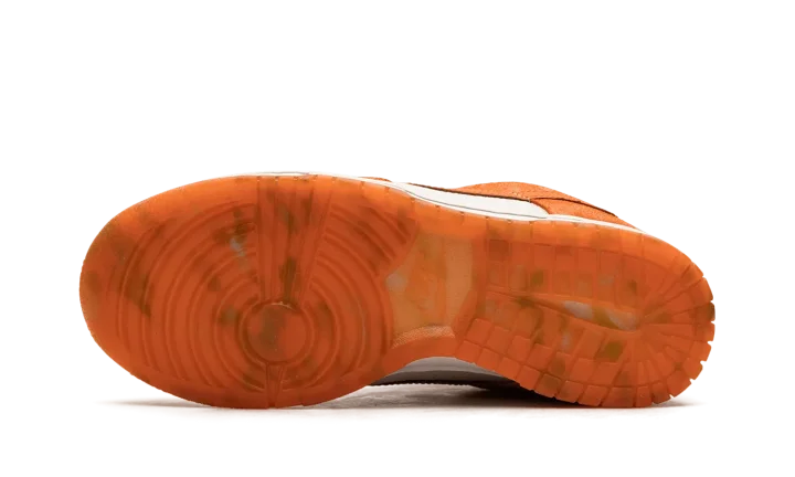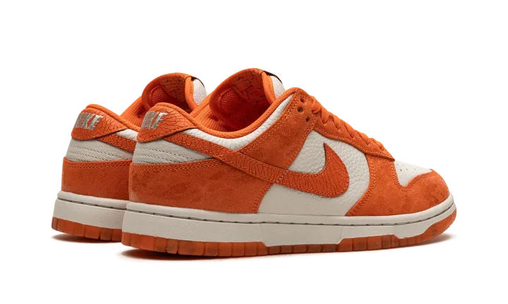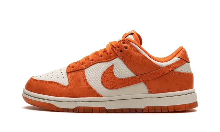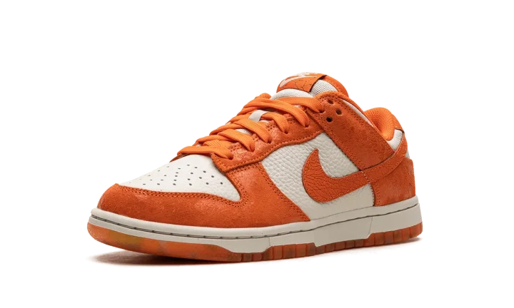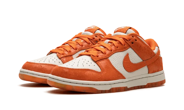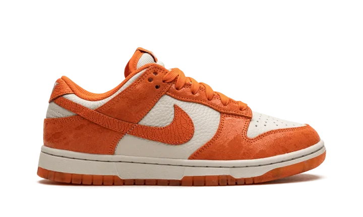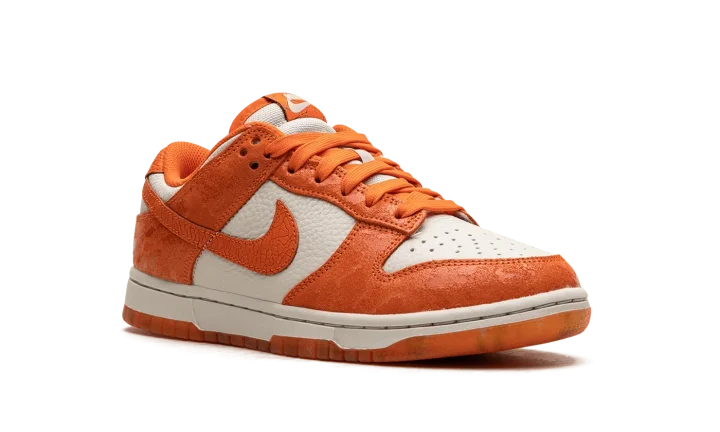 The Women's Nike Dunk Low "Total Orange" is a women's-exclusive colorway of the classic basketball shoe that resembles the model's "Syracuse" style, but with an updated look. Inspired by the "Syracuse" Dunk from the "Be True to Your School" pack from 1985, the "Total Orange" has the same white-and-orange color scheme as the former colorway, but with cracked leather overlays and Swoosh branding. The base layer is designed in Light Bone leather. Classic "Nike" branding is embroidered on the heel and on the tongue tag. Underfoot, the white rubber midsole is paired with an orange semi-translucent rubber outsole. Release date: August 12, 2023