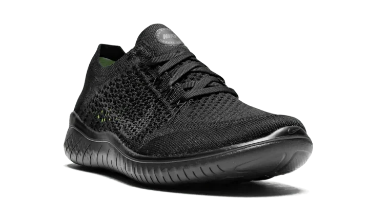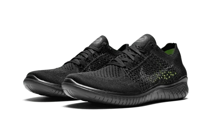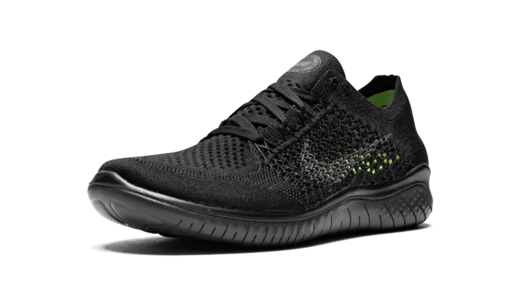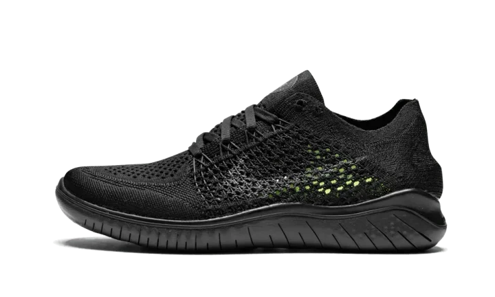 The Nike Free RN Flyknit 2018 mimics the feeling of barefoot running, while still providing protection and support. Designed for short runs, this women's shoe is the lightest in the Free RN franchise. The innovative shoe is sleek with a black Flyknit upper, a peek-a-boo grey Swoosh, and volt-green detailing underneath. The sock-like fit is updated with more stretch and the lightweight sole supports the foot's natural movement.