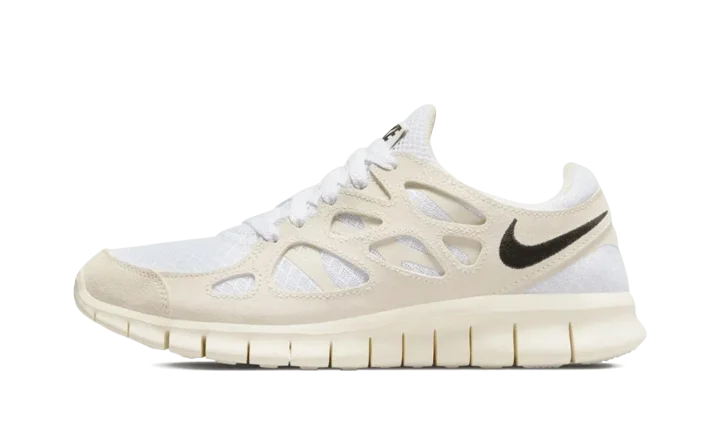 The Women's Nike Free Run 2 "White/Light Bone" is a women's-exclusive colorway of the performance running shoe with a versatile appearance. Simply called the "White/Light Bone" colorway, the lightweight shoe features a white mesh construction with a Light Bone-colored suede overlay "cage" that assists in supporting the lacing system. An oversized black Swoosh appears on the lateral side of the collar. Underfoot, waffle-like grooves in the Light Bone foam sole provide ample flexibility and grip on a variety of surfaces.