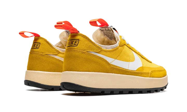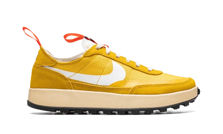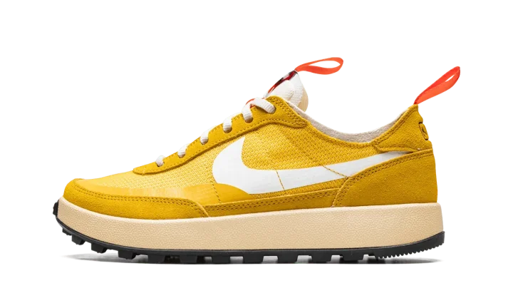 The Tom Sachs x Nike General Purpose Shoe "Dark Sulfur" is a special collaboration between the contemporary artist and Nike on a shoe that's "ordinary for extraordinary people." The first "General Purpose Shoe," or "GPS," for short, was designed by Sachs and Nike and released in June 2022. The model succeeds the duo's previous landmark collaborations on the Mars Yard and Mars Yard 2.0. The "Dark Sulfur," or "Archive," as it's also known as, is the second colorway of the General Purpose Shoe. The sneaker is likened to some of Nike's most timeless designs, particularly the Killshot and Waffle One models. According to Sachs, he set out to create a shoe that functioned as "a tool for everyday life." The upper features a yellow-colored mesh construction with a microfiber collar and grey suede overlays. A white Swoosh is found printed on either side. The shoe sits on a three-piece molded cupsole. In terms of comfort, the cream-colored EVA foam midsole provides a soft ride. Release date: September 1, 2022