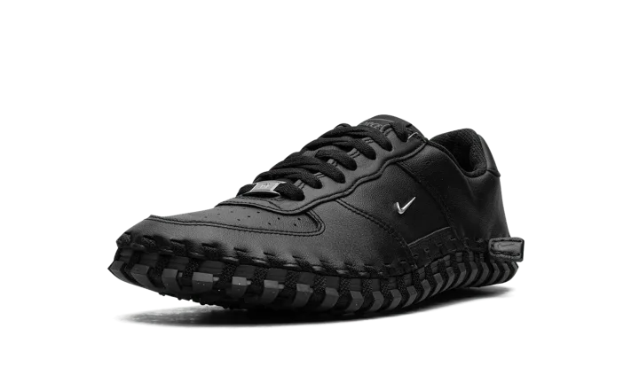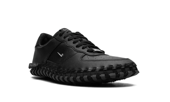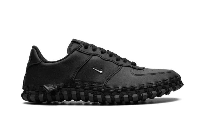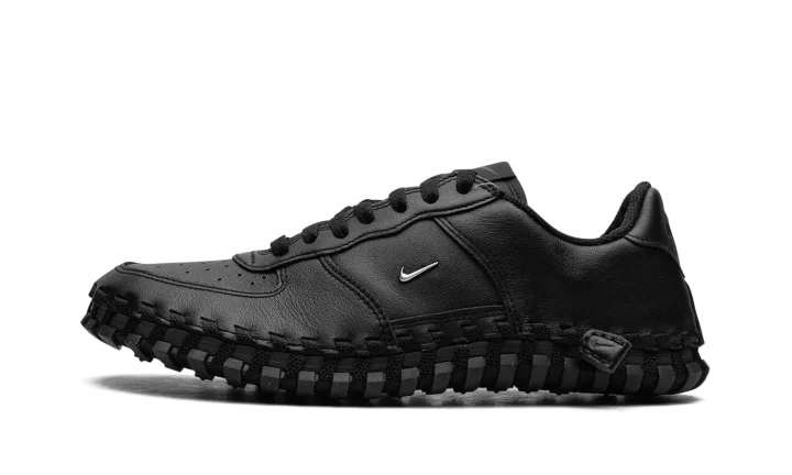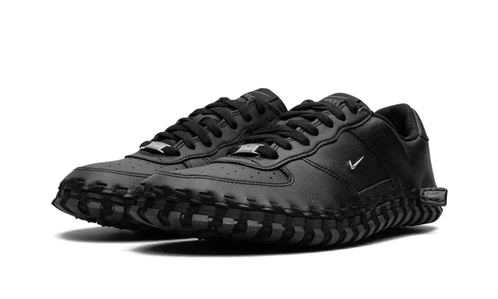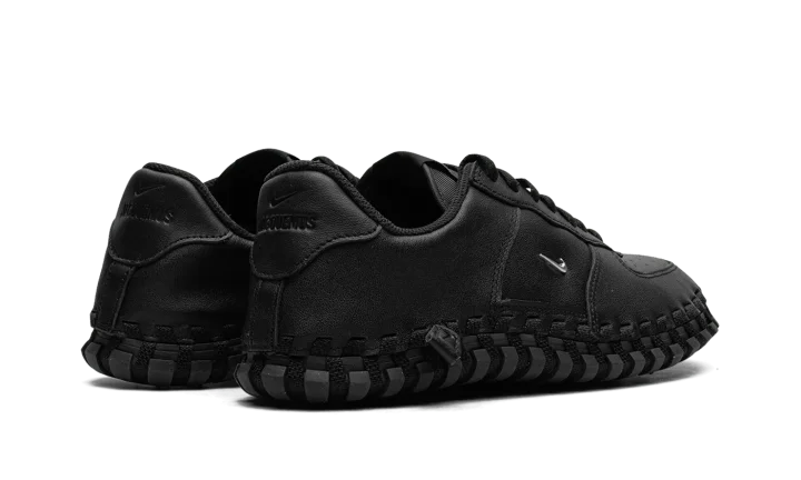 The Jacquemus x Nike J Force 1 Low "Black" is a collaboration by the French clothing brand that puts a decidedly modern take on the legacy sneaker. Not only is the J Force 1 Low inspired by Jacquemus's signature design ethos, the shoe's rugged design draws favorably from the Nike ACG Terra. The shoe is complete with a monochromatic black leather upper with exposed hand-woven overlays that ties the leather upper to the rubber sole. A small Metallic Black Swoosh appears on the sides. A "J Force 1" logo lands on the tongue tag and a debossed "Jacquemus" logo appears on the heel. The shoe is completed with a waffle outsole. Release date: June 21, 2023