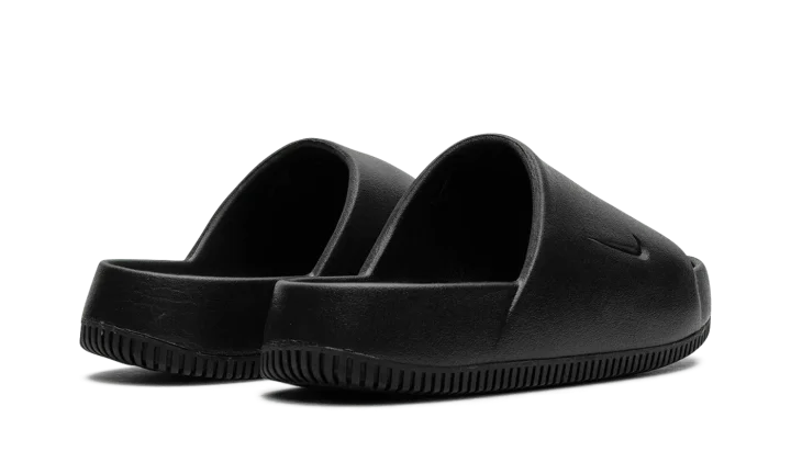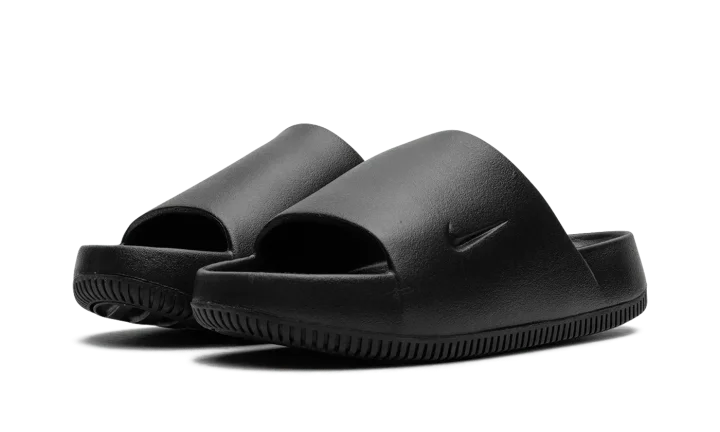 The Women's Nike Calm Slide "Black" is the women's sizing of the versatile, monochromatic black colorway of the comfortable slip-on sandal. The Calm Slide debuted in 2023 in several appealing colorways, including in this "Black" design. The sandal is constructed from a black one-piece foam mold. The midfoot strap that supports the sandal features a debossed Swoosh on the side. A thick foam cushioning footbed provides a comfortable ride. Release date: July 14, 2023