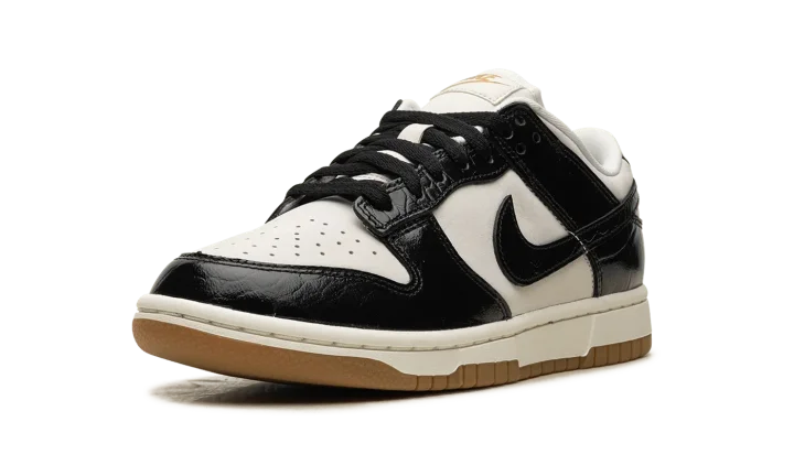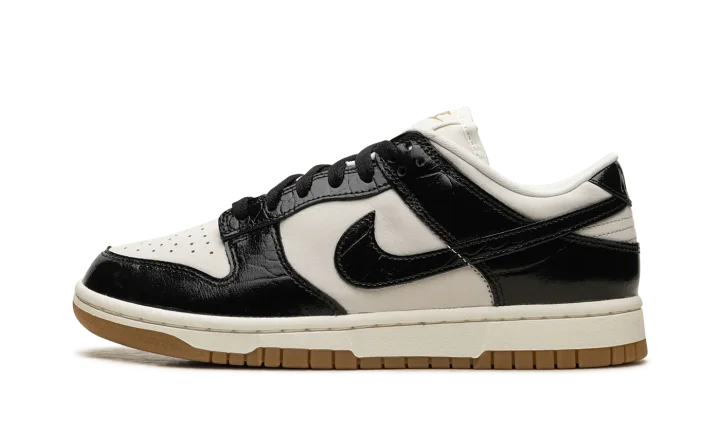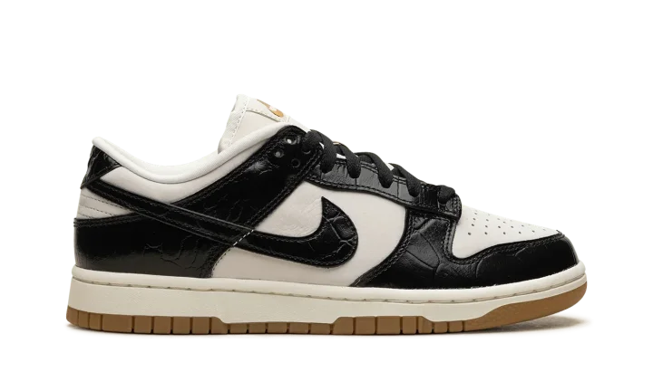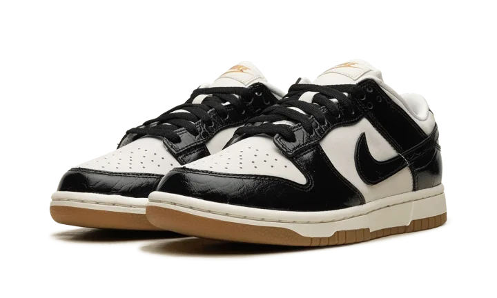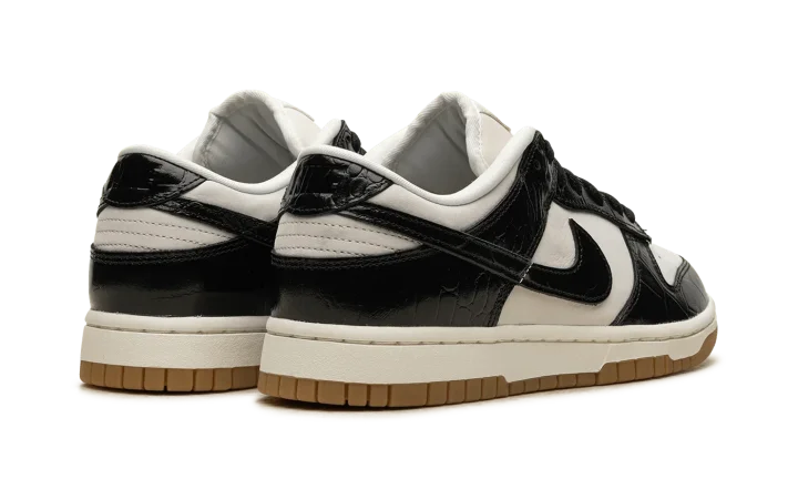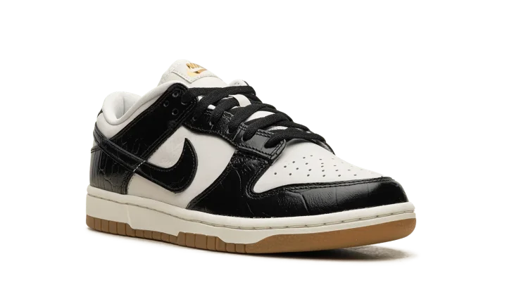 The Women's Nike Dunk Low LX "Black Croc" is a women's-exclusive colorway of the retro basketball shoe with glossy black faux croc leather details. A premium look for the always-popular Dunk Low, the "Black Croc" is complete with a Sail leather base and black patent croc leather overlays and Swoosh branding. Metallic Gold "Nike" and Swoosh branding on the tongue exudes a luxurious vibe. Debossed "Nike" detailing can be found on the heel. Underfoot, the midsole has an aged aesthetic. A gum rubber outsole completes the look. Release date: April 5, 2024