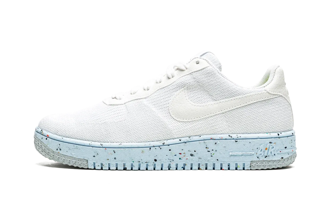 The Women's Nike Air Force 1 Crater Flyknit "White" is a modern take on the classic basketball shoe that updates the silhouette with environmentally friendly materials. Ultra lightweight, the shoe's upper is composed of Nike's Flyknit material that's both durable and breathable in design. A suede Pure Platinum Swoosh appears on either side and embossed "Nike Air" with a Swoosh branding graces the suede heel tab. The Air Force 1 Crater Flyknit for women rides on a speckled Crater foam midsole that's composed of Nike's "Grind" material.