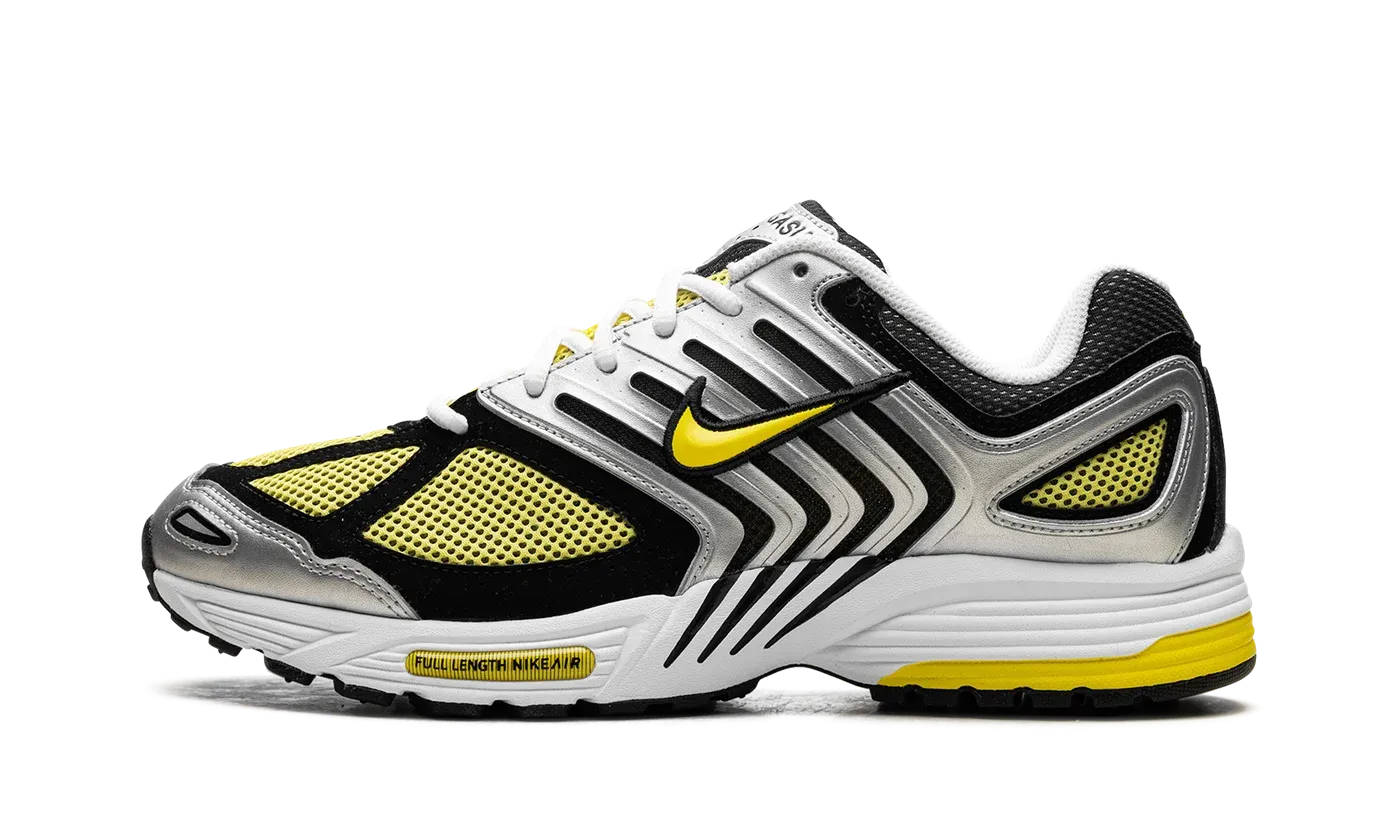 The style code HQ5718-100 is for the Nike Air Pegasus 2K5 Women's Shoes (a retro of the 2005 model) in the high-contrast, technical 'White/Metallic Silver/Black/Opti Yellow' colorway. This model blends the nostalgic look of an early 2000s runner with a sleek, metallic finish.