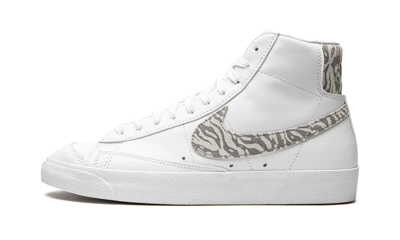 The Women's Nike Blazer Mid '77 "Zebra" is a women's-exclusive colorway of the retro basketball and lifestyle shoe with eye-catching animal-inspired accenting. Part of Nike's Fall 2021 collection, the "Zebra" Blazer Mid '77 is both versatile and bold with its crisp white leather upper and zebra-patterned Swoosh branding on either side. Additional zebra print comes into play on the heel tab where a classic "Nike" logo resides. Tonal "Nike Blazer" branding is located on the tongue tag of the white nylon tongue. Other details include white laces, white leather eyelet panels, and a vulcanized white rubber sole. Release date: October 11, 2021