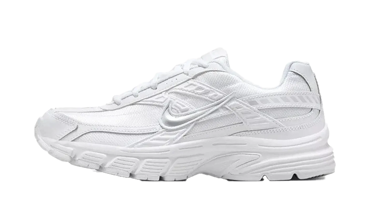 The style code FZ9020-100 identifies the Nike Women's Initiator Shoes in the clean and classic 'White Photon Dust/Metallic Silver' colorway. This model brings back a retro running silhouette, combining a lightweight, vintage aesthetic with supportive comfort.