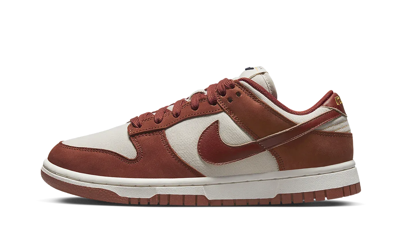The Women's Nike Dunk Low LX "Rugged Orange" is a women's-exclusive colorway of the retro basketball and lifestyle shoe with a casual vibe. The "Rugged Orange" Dunk Low LX features a Light Orewood Brown or off-white-colored canvas base with Rugged Orange leather overlays and Swoosh branding. A "Nike" logo is embroidered on the heel and printed on the tongue tag. A cream rubber midsole and burnt orange outsole complete the look. Release date: July 12, 2023