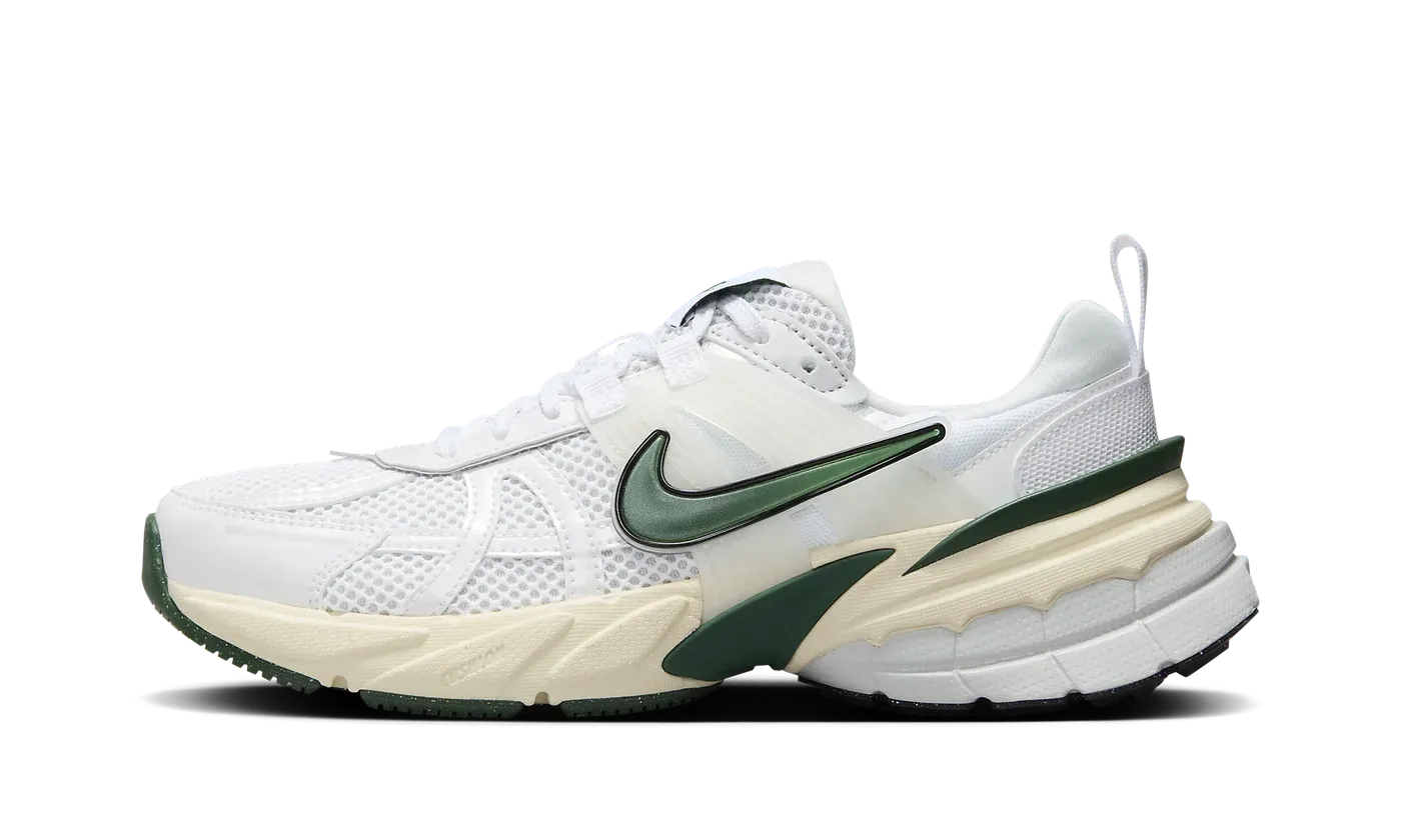 The Women's Nike V2K Run 'White/Green" is a women's-exclusive lifestyle sneaker with an early-2000s-era running shoe look. The V2K Run in the "White/Green" colorway has a white open mesh construction with tonal leather overlay paneling. A green Swoosh is seen on each side of the shoe on the translucent TPU "cage." Additional green accenting can be found on the "Nike" and Swoosh logos on the tongue and on the heel counter. Underfoot, a chunky, aged midsole gives the sneaker a decidedly vintage, Y2K-era look. Release date: October 17, 2023