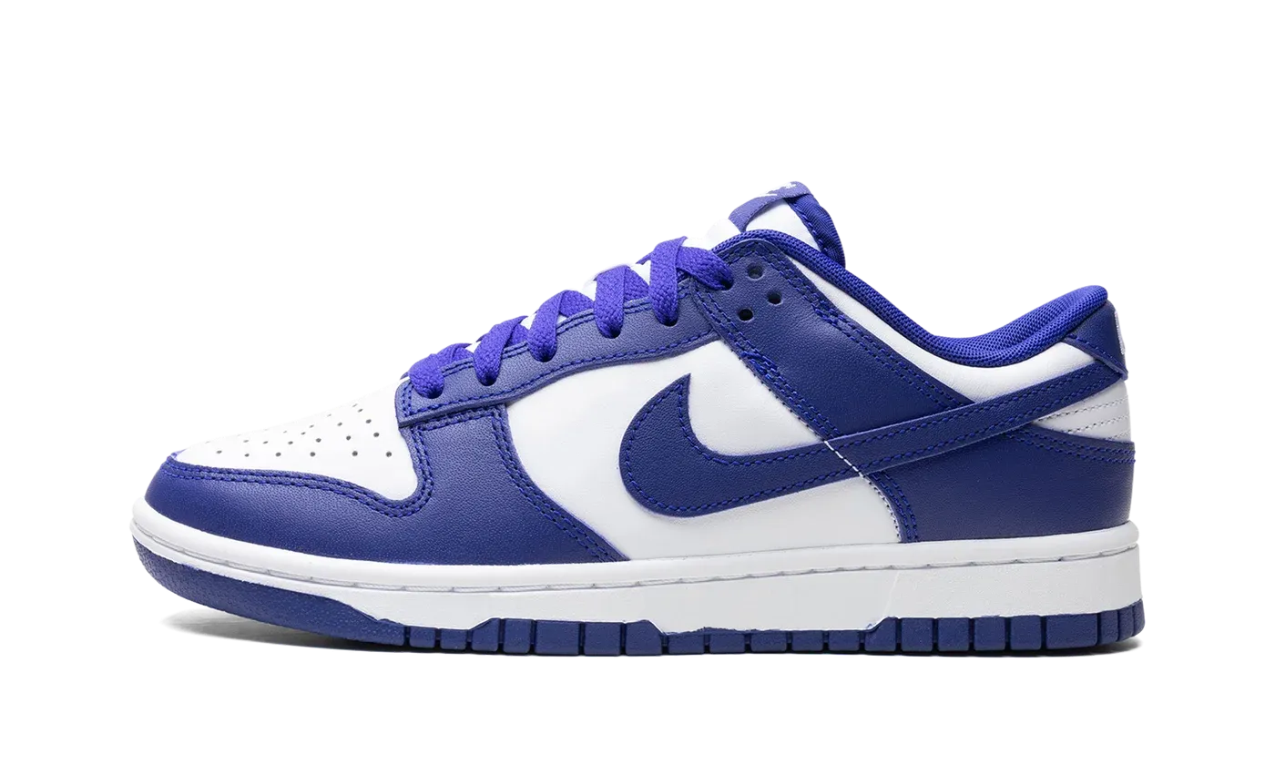 The Nike Dunk Low "Concord" is a two-tone, white-and-purple colorway of the retro basketball shoe. Reminiscent of the Nike Dunk Low "Court Purple," the "Concord" colorway has a white-and-purple color scheme, albeit with a slightly different shade of purple on its design. The upper has a white leather base and Concord-colored leather overlays and Swoosh branding. A classic white "Nike" logo is embroidered on the heel, while "Nike" and Swoosh logos appear on the Concord nylon tongue tag. Underfoot, a white rubber midsole and Concord rubber outsole complete the look. Release date: July 6, 2024