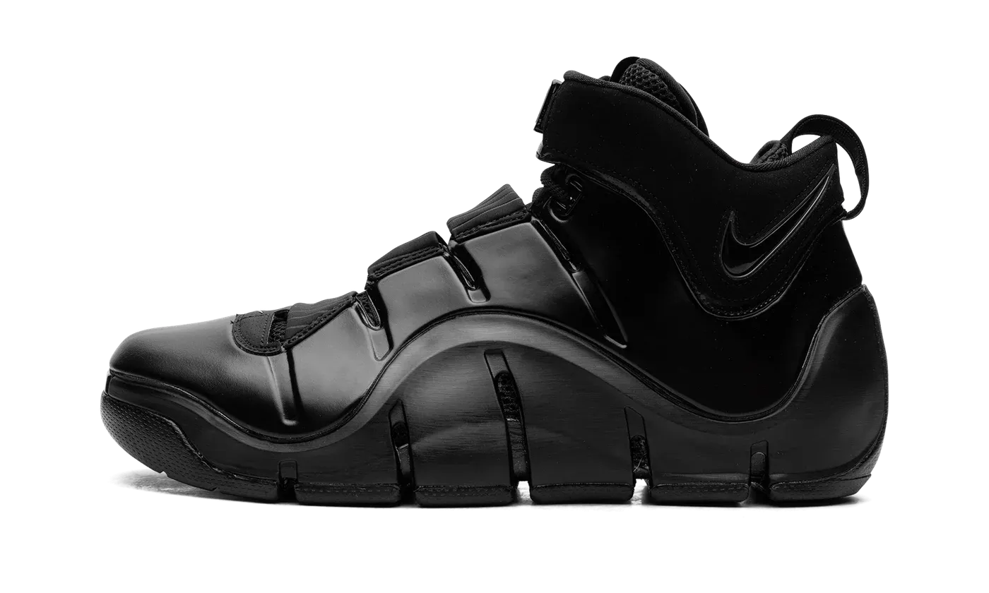 The Nike LeBron 4 "Anthracite" is a monochromatic black colorway of LeBron James's fourth signature shoe. Dubbed the "Anthracite" colorway, this Nike LeBron 4 features an all-black design, with a black Foamposite shell forming the upper. Black "Nike LeBron" branding can be found on various places throughout the shoe, including on the front of the tongue. A Swoosh logo appears on the sides of the shoe. Underfoot, the shoe's midsole features grooves for adaptable flexibility. Release date: December 12, 2023