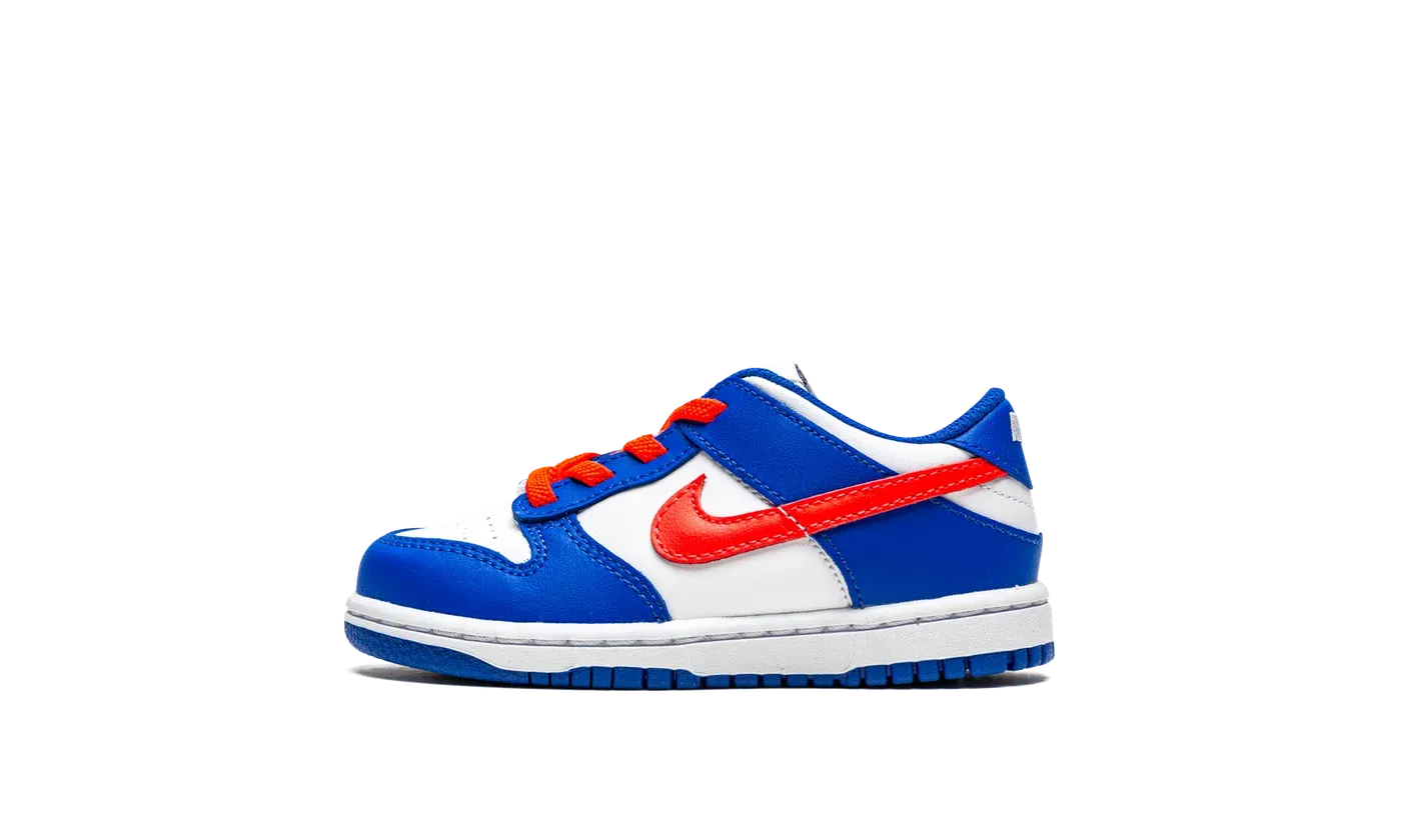 Die Nike Dunk Low TD Game Royal/Bright Crimson ist die Kleinkind-Version des klassischen Basketballschuhs in patriotischem Rot, Weiß und Blau. Mit hochwertigem Leder, markantem Design und dem unverkennbaren Nike-Logo ist dieser Schuh ein Must-Have für alle kleinen Sneaker-Fans.
