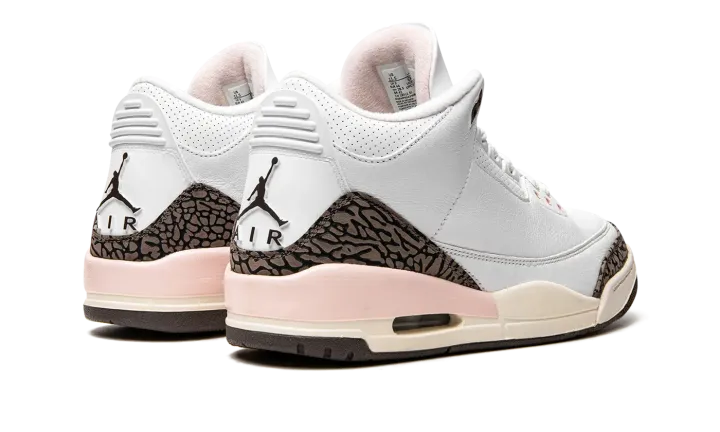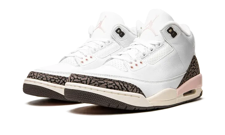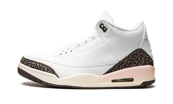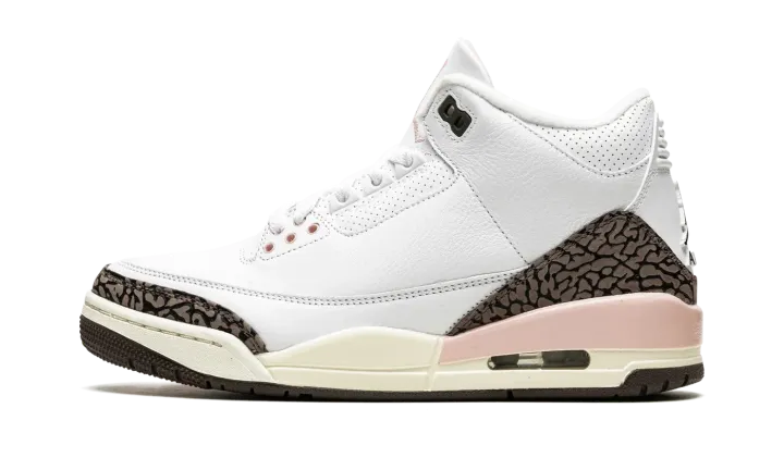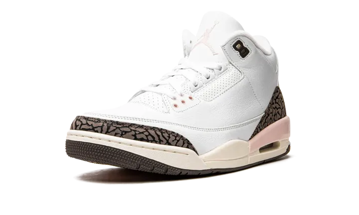 The Women's Air Jordan 3 "Dark Mocha" is a women's-exclusive release of the retro basketball shoe that nods to a popular, non-original colorway of the model. From Jordan Brand's Spring 2022 collection, the "Dark Mocha" or "Neapolitan," as it is also known as, salutes to the Air Jordan 3 "Mocha." The "Dark Mocha" is arranged in the same color block as the original "Mocha" Jordan 3, albeit with a few light pink accents sprinkled into its design. The upper is constructed from white tumbled leather. The Jordan 3's iconic elephant patterning found on the toe and heel are designed in a shade of dark brown. A Jumpman logo is paired with "Air" branding on the heel and an Atmosphere—or pink—Jumpman is embroidered on the white leather tongue. Release date: May 14, 2022
