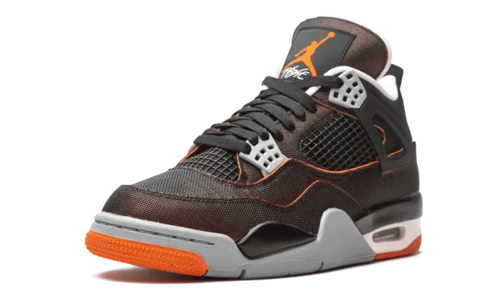 The Women's Air Jordan 4 "Starfish" is the women's sizing of Michael Jordan's fourth signature shoe in a decidedly lifestyle adjacent colorway. An early 2021 release by Jordan Brand, the "Starfish" colorway features an interesting mixture of colors and materials that highlight the design's versatility. The upper displays a blue ballistic mesh construction with an underlaid orange design beneath. Similarly to the original Air Jordan 4 design, mesh detailing can be found on both the tongue and mid-panel. Grey plastic eyelets and an orange accented Jumpman logo on the black nylon tongue tag add to the shoe's retro appeal. Additional style elements include grey Jumpman branding on the heel, a black painted mudguard, and a small visible Air unit in the heel of the midsole. Release date: January 21, 2021.