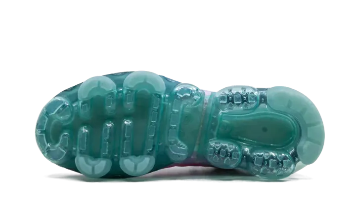 The Nike Air Vapormax 2019 presents a striking colorway of the performance running sneaker. Also a lifestyle favorite, the Vapormax 2019 silhouette is done up in a stretch-woven upper that provides lightweight structure and an internal cage that wraps around your midfoot for added support. Nike branding is tastefully added throughout. Underfoot, VaporMax Air cushioning gives a bouncy sensation and soft responsiveness. Reliant on the vibrant hues to turn heads on the street, the women's sneaker is highlighted with pink, purple, and turquoise on the upper and a clear turquoise outsole.