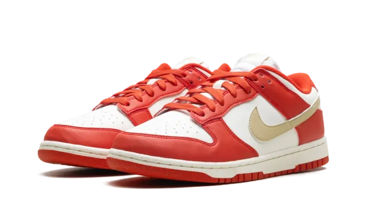 he Nike Dunk Low "Team Gold" offers a classic and bold take on the iconic silhouette. This sneaker is a modern favorite for its clean, two-toned colorway and versatile appeal. It's an essential piece for any fan of the Dunk's retro style.