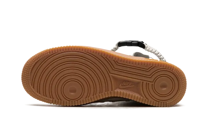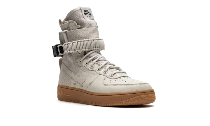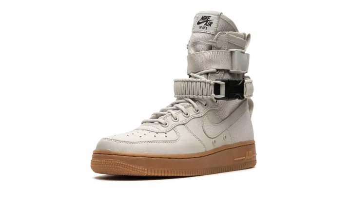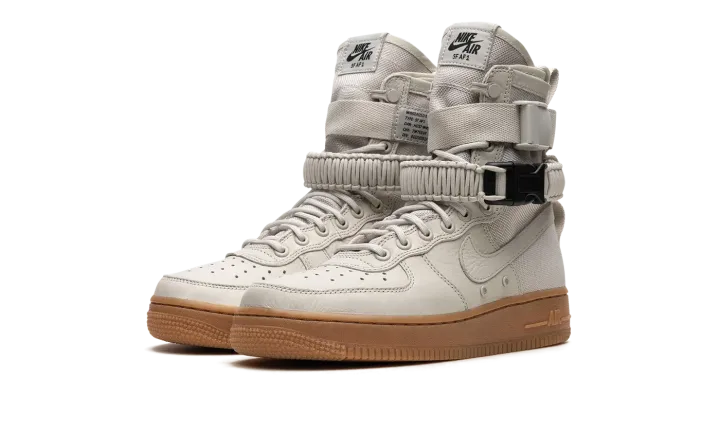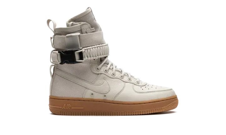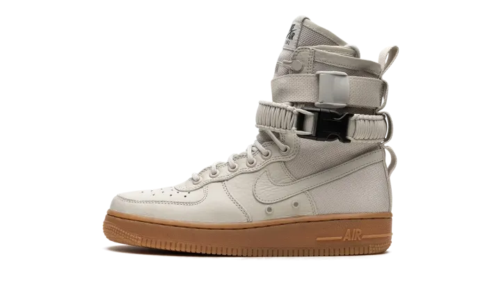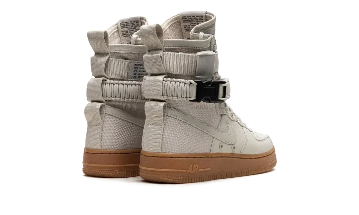 The Nike Women's SF-AF1 "Light Bone" is a clean and stylish look for the bold "Special Field" iteration of the extra high-top Air Force 1. This women's colorway features a Light Bone full-grain leather and ballistic nylon upper with a matching shade for the strap system. The military boot inspired Air Force 1 is finished with black detailing and a gum rubber outsole. The Nike Women's SF-AF1 "Light Bone" released in 2017.