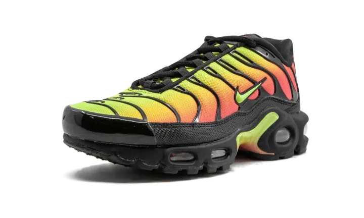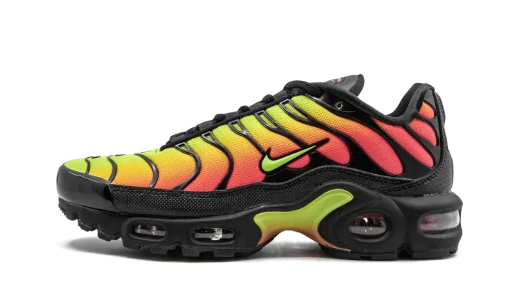 The Nike Air Max Plus TN, created especially for women, offers a stunning color combination. With a similar look from Air Max Plus colorways like the "Sunset" model, this version of the silhouette incorporates a hit of green. The sneaker gets an almost entirely mesh upper in a bright green, yellow, orange, and red gradient that travels the length of the shoe. Then, the vibrant colors are drastically contrasted with black TPU cage overlays. Like any great Nike Air Max Plus TN, the Swoosh equips the runner with a signature Ultra rubber sole unit.