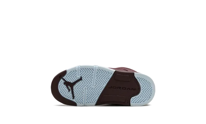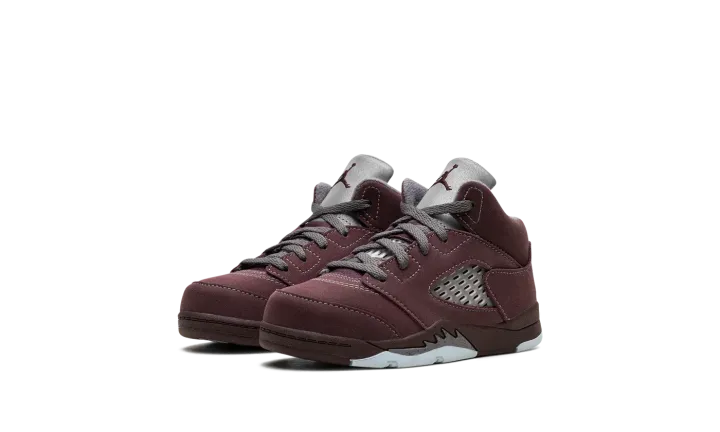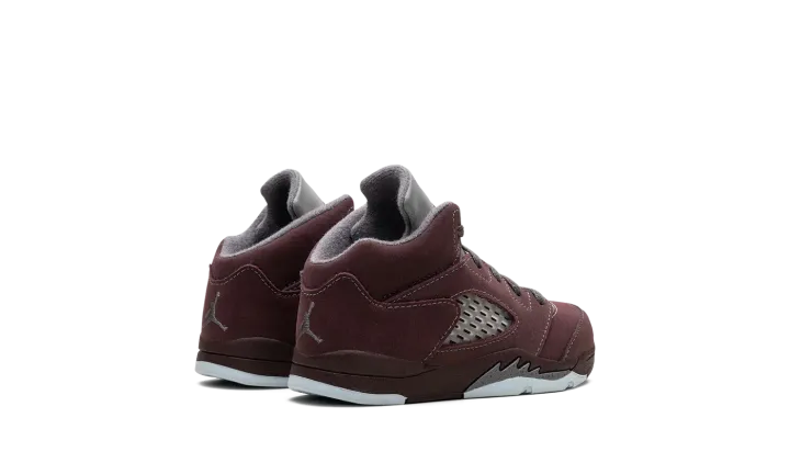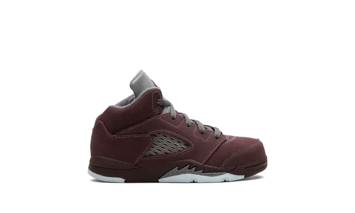 The Air Jordan 5 Retro SE TD "Burgundy" is toddler sizing of the classic colorway that originally released in 2006. Debuted as part of Jordan Brand's "LS" or "lifestyle" collection, the Jordan 5 "Burgundy" was one of the model's first non-original colorways, and one of its most popular releases of the 2000s. The modern edition is nearly identical to the original 2006 release. Deep Burgundy suede appears on the shoe's upper. Translucent netting is found on the mid-panel and on the tongue. A Deep Burgundy Jumpman appears on the silver reflective tongue and a silver Jumpman is embroidered on the heel. Light Graphite shark tooth detailing is found on the burgundy midsole. Release date: September 9, 2023
