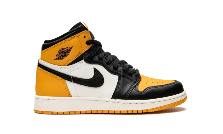 The Air Jordan 1 High OG GS "Taxi" is the youth sizing of Michael Jordan's first signature shoe in a colorway inspired by the iconic "Black Toe" Jordan 1 from 1985. Interestingly enough, the "Taxi" is also inspired by a rare, unreleased sample Jordan 1 High OG given to Shinedown, a Jacksonville, Florida based rock band, in celebration of their "Attention Attention" album release in 2018. For the "Taxi," yellow leather is found on the perforated toe and black leather is found on the toe cap, forefoot, and eyelets. The yellow-and-black color combination around the toe is inspired by the original Jordan 1 "Black Toe" from 1985. Release date: August 13, 2022