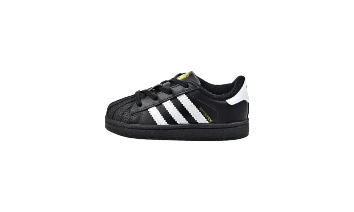 The Superstar TD 'Core Black' shoe features a classic design in an all-black colorway, making it a versatile and timeless addition to any sneaker collection.