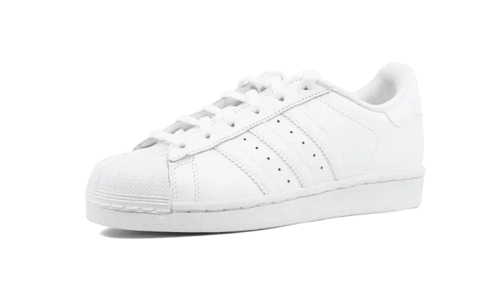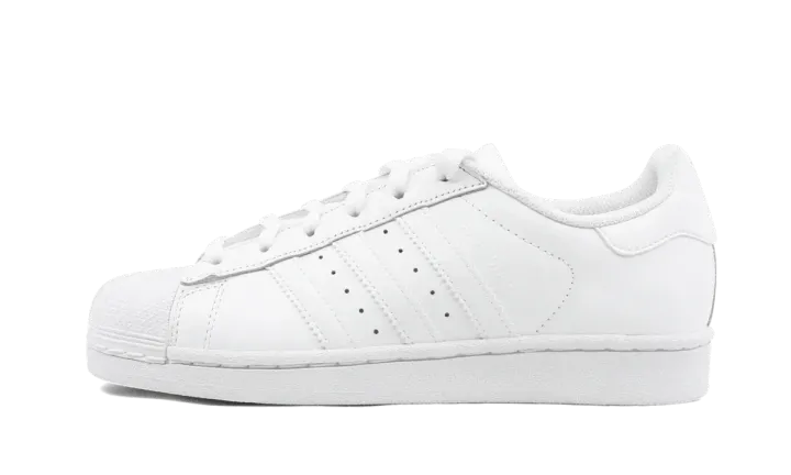 The Superstar Foundation J shoe features a classic design, offering a versatile and timeless addition to any sneaker collection.