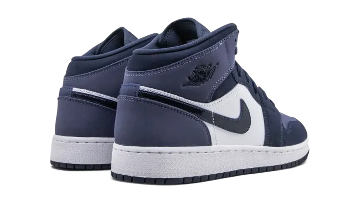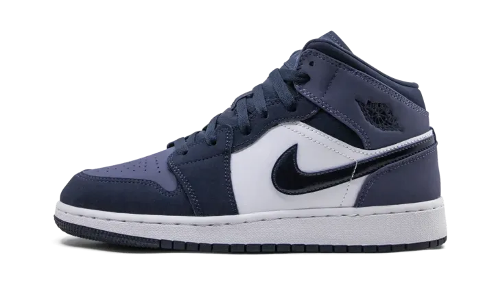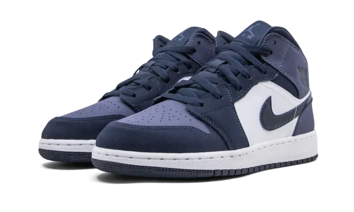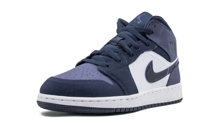 The Air Jordan 1 Mid GS "Sanded Purple" is the youth sizing of the purple and obsidian-colored version of Michael Jordan's first signature shoe. Slimmed down for the feet of children, the "Sanded Purple" look features a purple nubuck perforated toe that is contrasted by obsidian blue overlays on the forefoot and toe cap. A dark blue Swoosh on the mid-panel pops against the white leather base of the shoe. Jordan Brand opts for additional purple nubuck on both the collar and heel. Black Wings detailing is found on the collar.