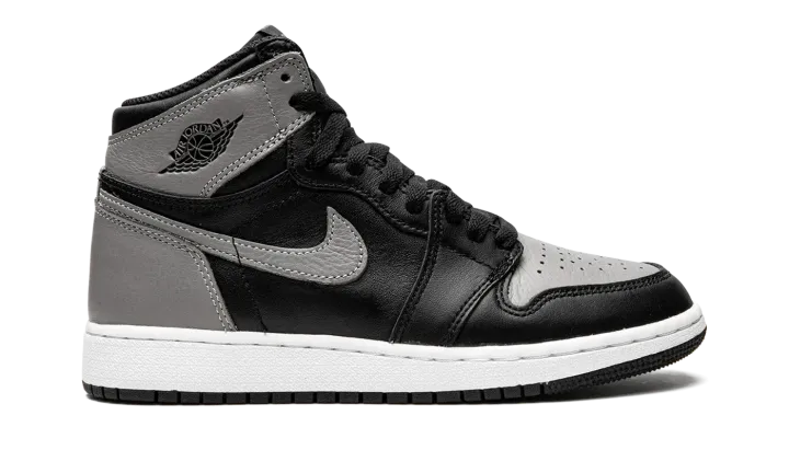 The Air Jordan 1 GS "Shadow" is the kids' version for the 2018 retro of the original black and grey colorway. Just like the men's sizing, this kids' version is presented in OG form, featuring a black and grey leather upper with "Nike Air" branding on the tongue. Thanks to the versatility of the black and grey color scheme that can be worn with virtually any outfit, this is one of the most popular Air Jordan 1 colorways ever and a must-have for any young Air Jordan collector. The youth Air Jordan 1 "Shadow" released in April 2018 and sold out quickly.