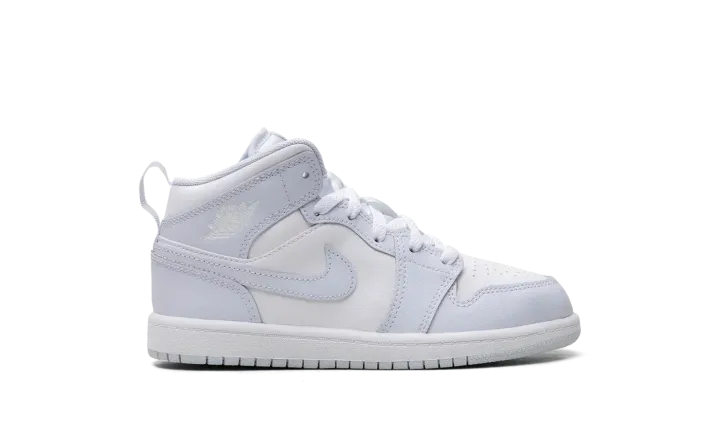 Make their feet pop with the Jordan 1 Mid PS "Cobalt Bliss." This Preschool-sized shoe, also known as "Aquatone," delivers iconic style with a bright and playful twist. It combines durable leather with pops of vibrant Cobalt Bliss (a striking blue-green) and accents of Pink Glow or Celestial Gold. The mid-top silhouette and comfortable foam cushioning provide support, ensuring your little one is stepping out with a winning mix of classic heritage and electrifying color.
