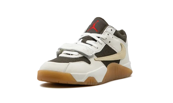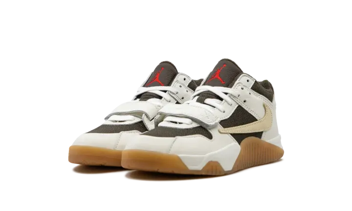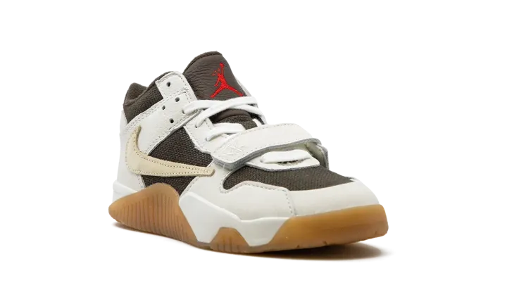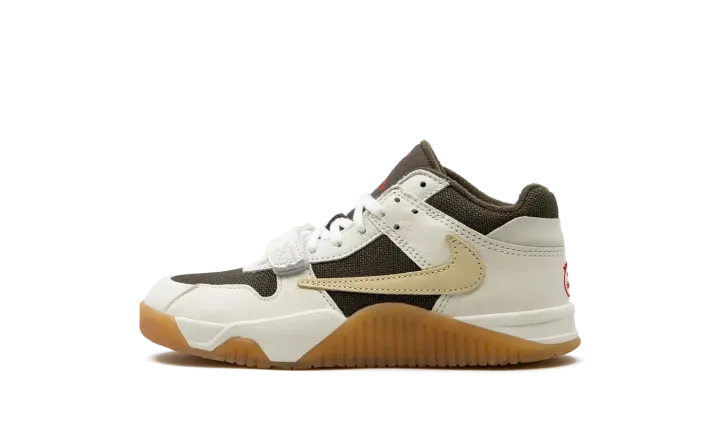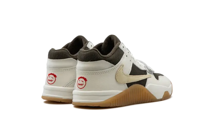 Introduce your little one to Travis Scott's signature style with the Jordan Jumpman Jack "Sail" PS. This preschool shoe marks the hip-hop star's debut signature design with Jordan Brand. Featuring details like a backwards Swoosh and smiley face logos, this unique sneaker combines a Muslin textile base, Sail leather overlays, and a backwards Swoosh. A standard leather Swoosh is on the medial side, and a Sail leather midfoot strap provides a secure fit. Scott's signature smiley face logo is embroidered in red on the heel.