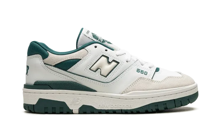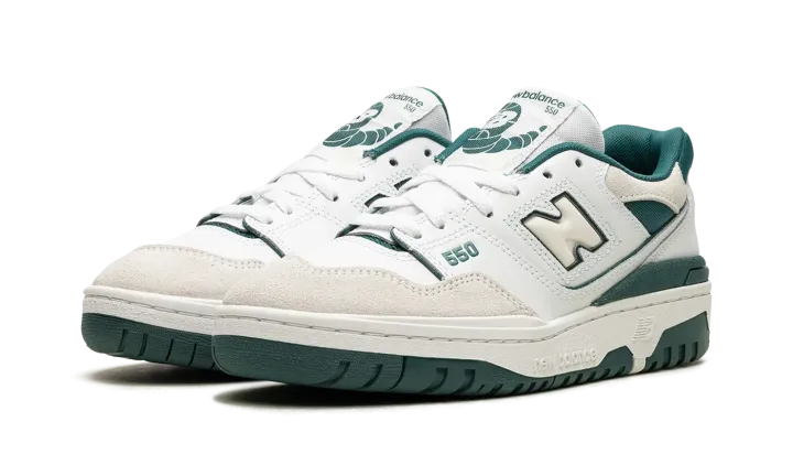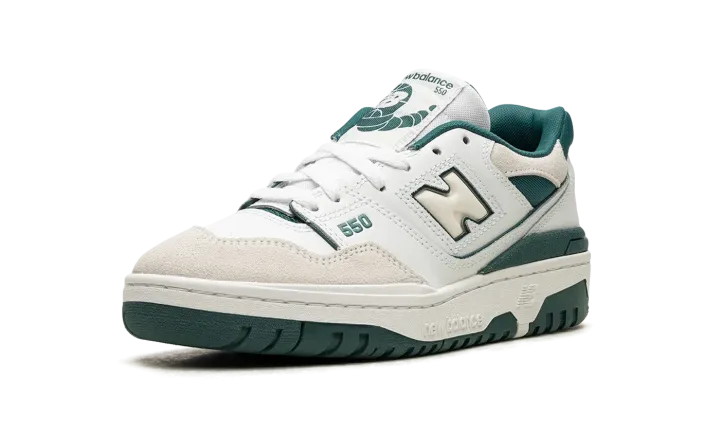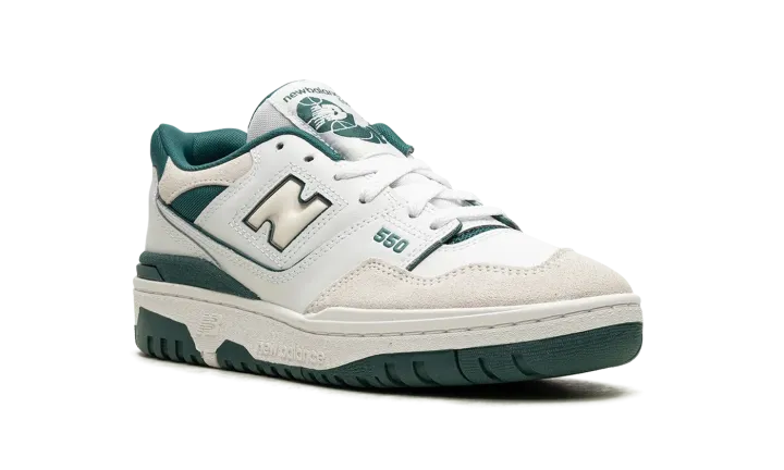 The New Balance 550 GS "Vintage Teal" is the youth sizing for the colorway of the retro basketball sneaker with a summer look. The "Vintage Teal" features a look that's perfect for warm weather wear. White leather appears on the shoe's upper while a light grey suede overlay is seen on the toe. A milky white "N" logo with Vintage Teal trim appears on the side. More Vintage Teal accenting is seen on the "550" branding on the lateral side of the forefoot, the "NB" logo on the heel, and the "New Balance 550" graphic on the tongue tag. Both the mesh collar and inner lining are also finished in Vintage Teal. Underfoot, the chunky white rubber midsole is matched with a teal rubber outsole. Release date: June 21, 2023