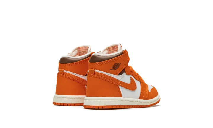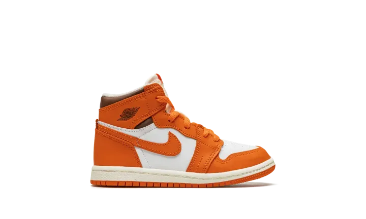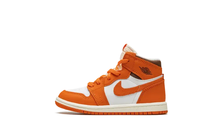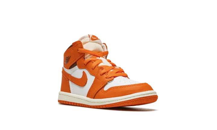 The Air Jordan 1 High OG TD "Starfish" is the toddler sizing of Michael Jordan's first signature shoe in a colorway with autumn-inspired orange overlays. This clean, wearable look for the Air Jordan 1 High OG model dubbed the "Starfish" features a white leather base with Starfish-colored leather overlays and Swoosh branding. A brown "Wings" logo can be found on the collar. A cream nylon tongue with orange laces adds visual interest to the upper. Underfoot, a white rubber midsole and Starfish outsole complete the look. Release date: October 27, 2022