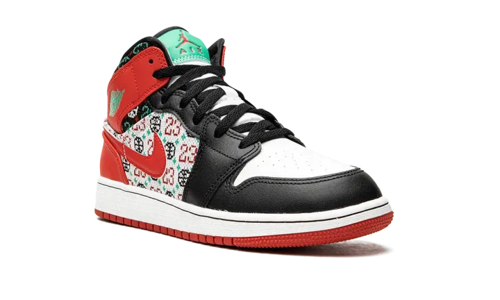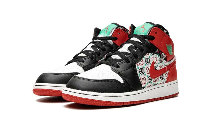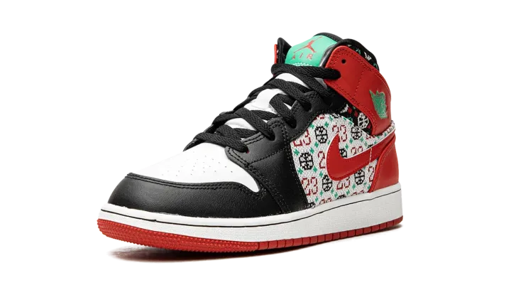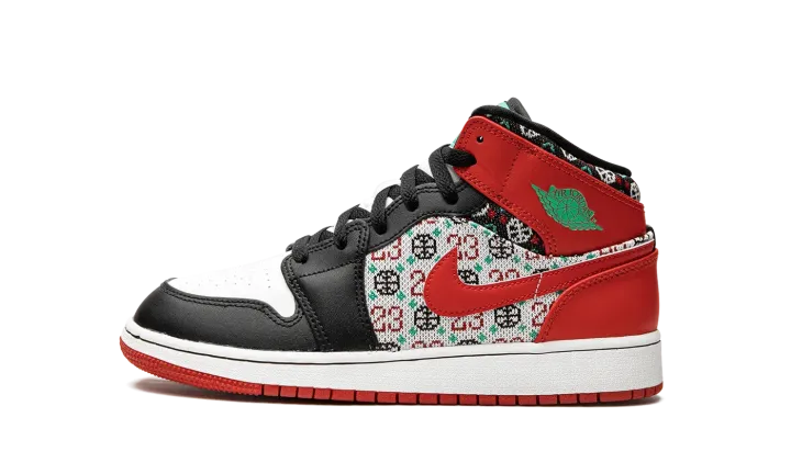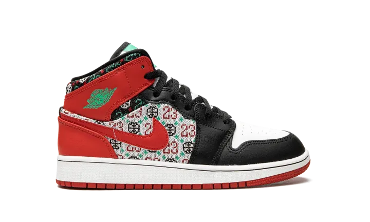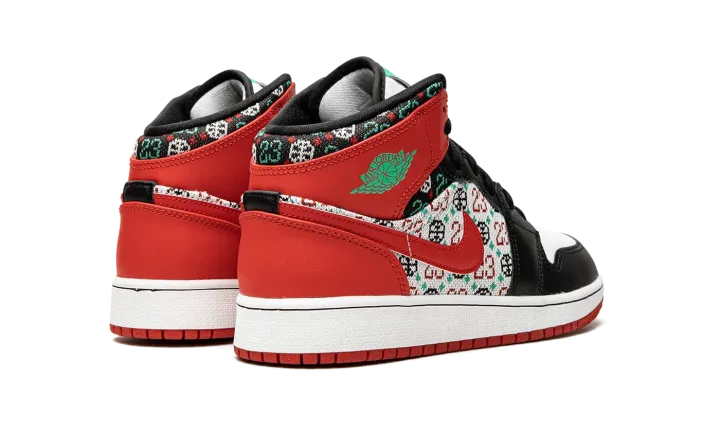 The Jordan 1 Mid "Ugly Christmas Sweater" instantly levels up holiday and cold-weather style. Paying tribute to holiday knitwear (you know, the tacky kind), this pair of Jordan 1's is outfitted with a festive knit pattern that features Michael Jordan's "23," a basketball, and snowflakes on the upper's quarter and collar. A leather Swoosh in University Red accents the pattern, while the rest of the lifestyle sneaker is done up in familiar colors of red, black, and white.