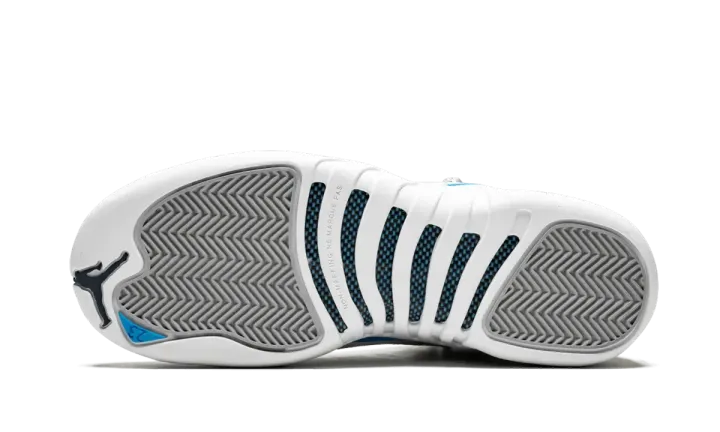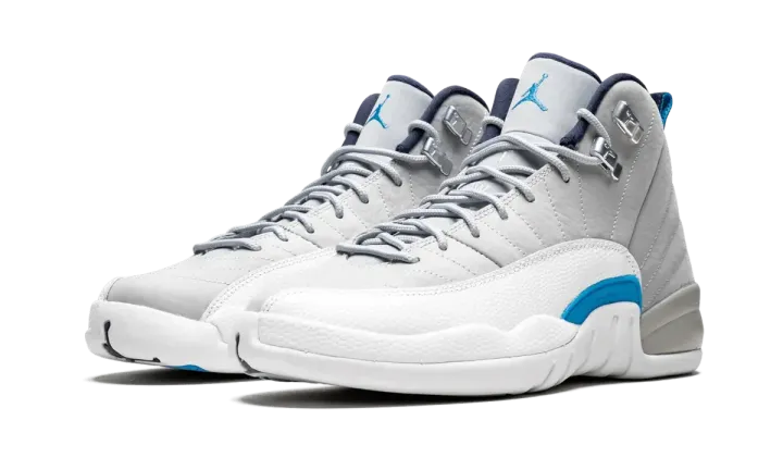One of the brand-new Air Jordan 12 colorways released in 2016 during the model's big comeback year, this clean colorway features a Wolf Grey nubuck upper with white toe panels and University Blue accents. Often referred to as the "UNC" colorway due to its similar color scheme to Michael Jordan's alma mater, University of North Carolina. This listing is for Grade School sizing.