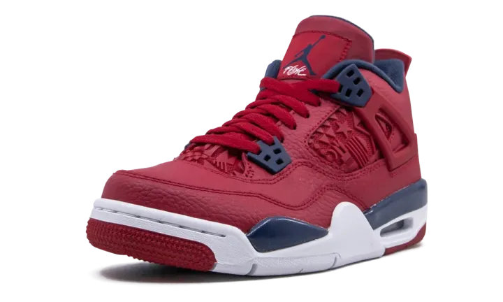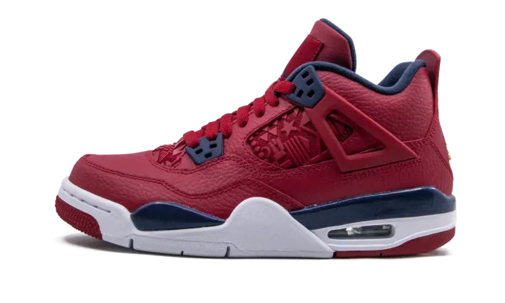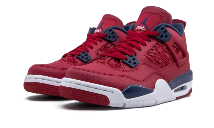 The Air Jordan 4 GS "FIBA" is the youth sizing of Michael Jordan's fourth signature basketball shoe in a special makeup for the 2019 FIBA Basketball World Cup. The tournament is held every four years with men's national teams competing for the crown of international basketball champion. Here, the commemorative Air Jordan 4 for children dons a Gym Red leather upper with textured rubber geometric shapes fused on the mesh mid-panel and tongue. Contrasting the look are Obsidian overlays on the eyelets and sock-liner with a Metallic Gold Jumpman logo appearing on the heel. A "For the Love of the Game" logo is located on the insole. An Obsidian mudguard sits on top of a crisp white rubber midsole with visible Air in the heel. The Air Jordan 4 "FIBA" in grade school sizing was released on September 7th, 2019.