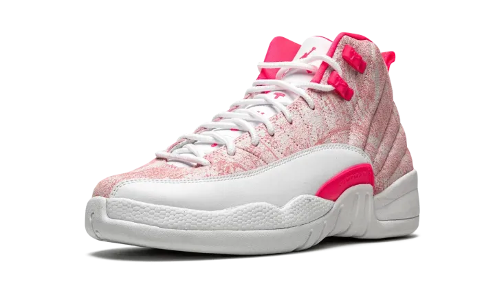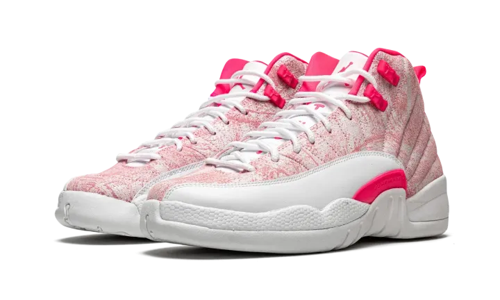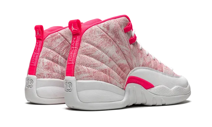 The Air Jordan 12 PS "Arctic Punch" is a children's-exclusive version of Michael Jordan's twelfth signature shoe dressed in a colorway inspired by none other than ice cream. Appearing in women's and kids sizing, the Jordan 12 "Arctic Punch" features a spring and summer appropriate blend of pink and white in its design. A washed out and crackled finish is applied to the leather panels on the upper and a cut of smooth white leather graces the forefoot overlay. Hot pink accenting graces the metal eyelets, the Jumpman insignia above the white rubber midsole, and the embroidered Jumpman and "Two 3" detailing on the white leather tongue. Additional pink detailing can be found on the liner and on the nylon pull tab on the back of the shoe. Tonal embossed "23" branding dots the heel of the midsole to complete the look. Release date: March 22, 2021.