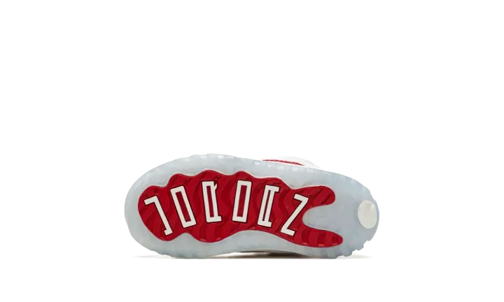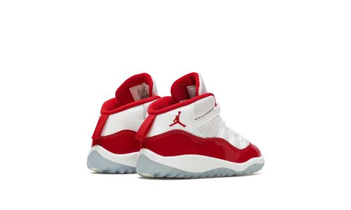 The Air Jordan 11 TD "Cherry" is the toddler sizing of the Holiday 2022 release of Michael Jordan's eleventh signature shoe in a colorway inspired by the Jordan 11 Low "Cherry" from 2001. Like the original "Cherry" release, the modern version features a white and red color scheme inspired by Michael's time with the Chicago Bulls. The shoe features a white ballistic mesh upper with tonal webbing eyelets and a fiery Varsity Red patent leather mudguard. Additional red detailing comes into play on the Jumpman on the collar and on the "23" branded heel overlay. The shoe is complete with a white foam midsole and translucent rubber outsole. Release date: December 10, 2022