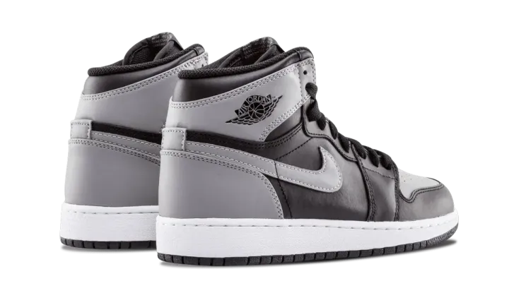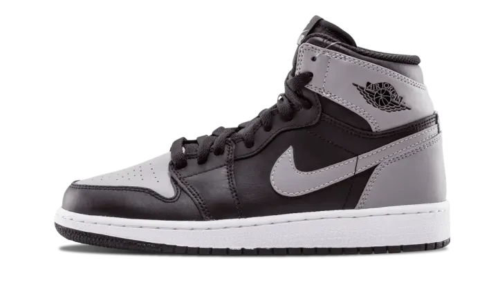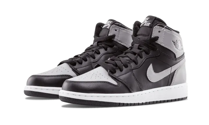 The original colorway of the Air Jordan 1 High in black and 'Shadow' grey was reproduced in true form with this Air Jordan 1 High OG release from 2013, featuring the shoe's original shape and "Nike Air' branding on the tongue. This listing is for Grade School sizing only.