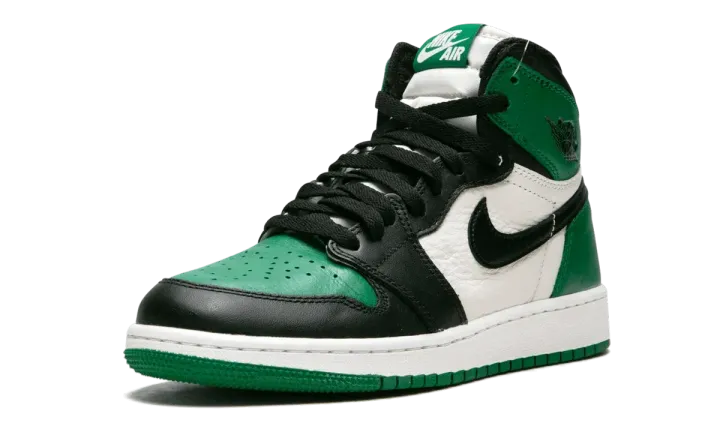 The Air Jordan 1 "Pine Green" GS is a children's version of the highly popular 2018 colorway of the legendary silhouette. With a premium leather upper in white, black, and Pine Green, the kids' version varies slightly from the men's sizing of the colorway, as it features a white nylon tongue instead of black. Like the men's edition, the Grade school sizing also sold out quickly upon release in September 2018, and is now one of the most in-demand colorways of the Air Jordan 1 released all year thanks to its OG-inspired color blocking mixed with the updated Pine Green hue.